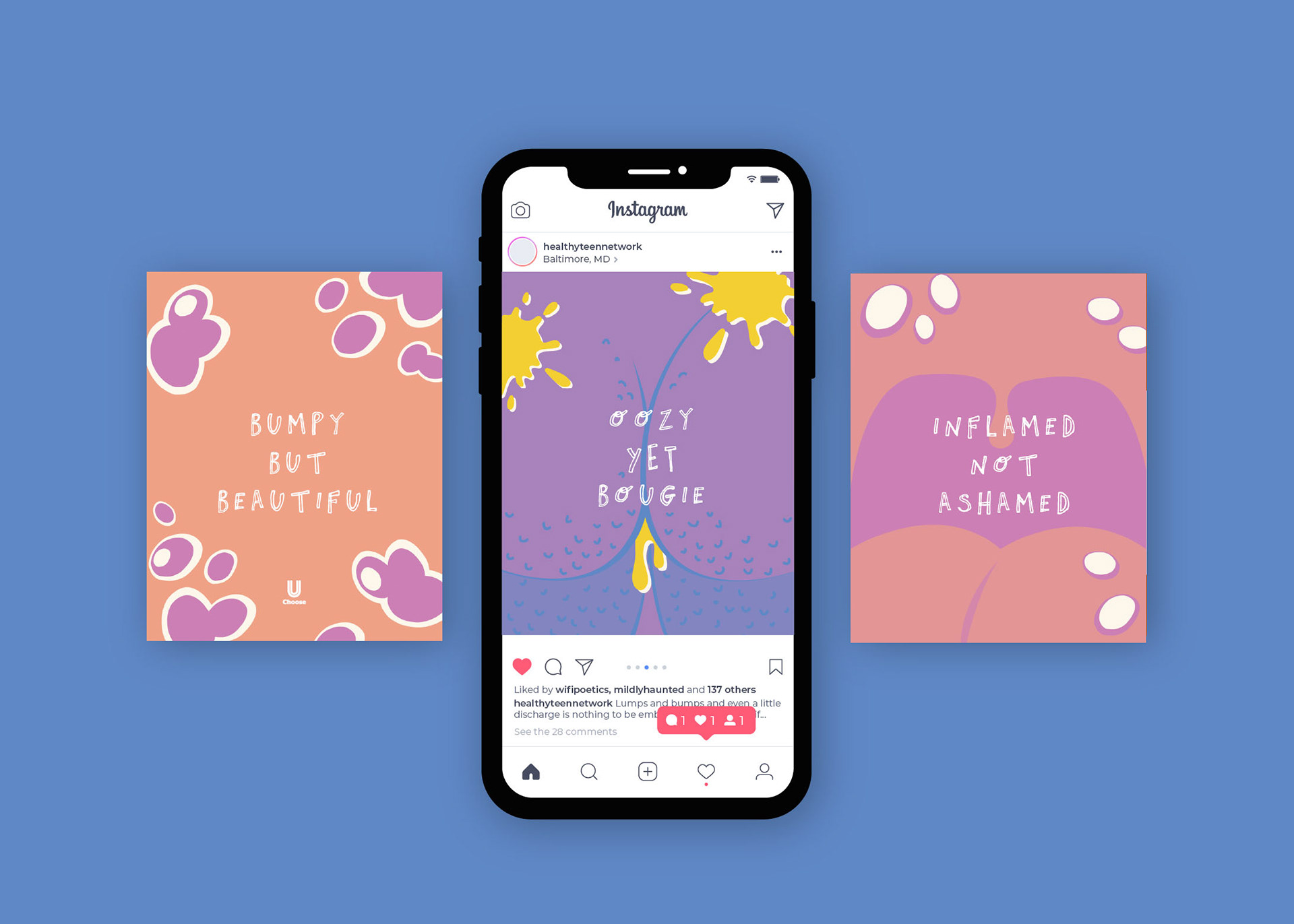 A little bit camp and a little bit content, the unapologetically sex- and body-positive campaigns I illustrated and directed for two Baltimore sexual health clinics confronts the harms of past sexual health messages head on: Calling out the "pearl clutchers and health class Karens" who rely on "charteganda" to get us to surveil ourselves and shame each other.